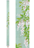 2月から4月にかけて可愛らしい花をたくさん咲かせ、まだ肌寒い季節にも心を明るくしてくれる馬酔木の花。鈴のような白い花と、春風がそよぐ青空のイメージを合わせ、軽やかな春の雰囲気に仕上げました。