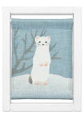 純白の雪原に佇む一匹のオコジョ。まるでこちらに何かを語りかけてくるかのよう。お部屋の一角に、小さなやすらぎを添えます。